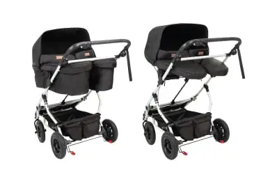 Incorporating thoughtful innovation that focuses on longevity, Mountain Buggy® ensures you get much more than just a lie flat carrycot for your twins. The 'plus' delivers a safe, incline position for those newborns who suffer from reflux, and as twins get older; the included fabric sling seat allows parents to face their twins for up to 15kg capacity.