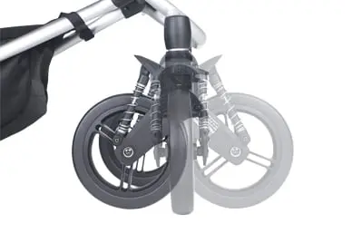 2-mode front wheels to lock back (control over uneven terrain) OR 360° full swivel (manoeuvrability for navigating tight spaces)