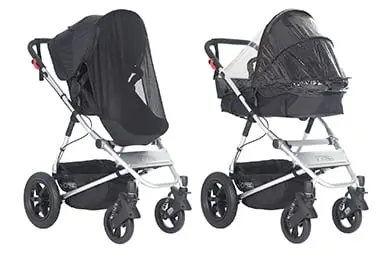storm cover and mesh cover (sold separately) also cover bassinet